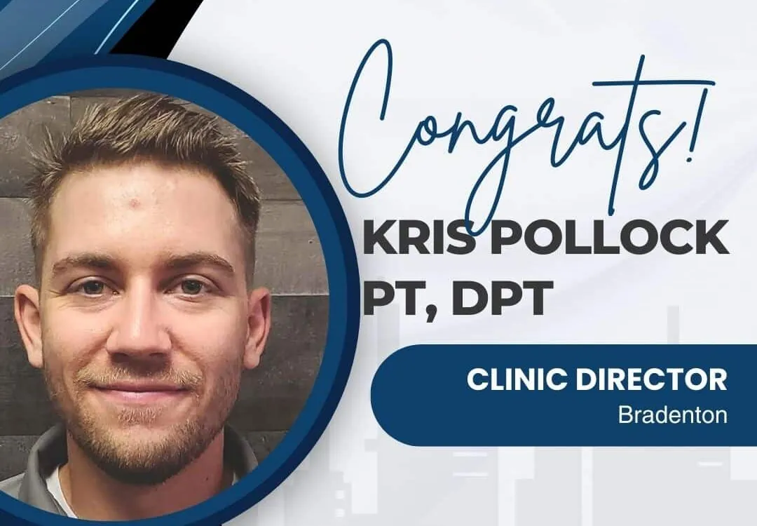 Bradenton, FL – [December 5, 2024] – Fitness Quest Physical Therapy is excited to announce the promotion of Dr. Kristopher Pollock, PT, DPT, to Clinic Director at its Bradenton clinic. Dr. Pollock has not only shown remarkable dedication in his clinical practice but has also furthered his professional development by achieving significant milestones in his career.